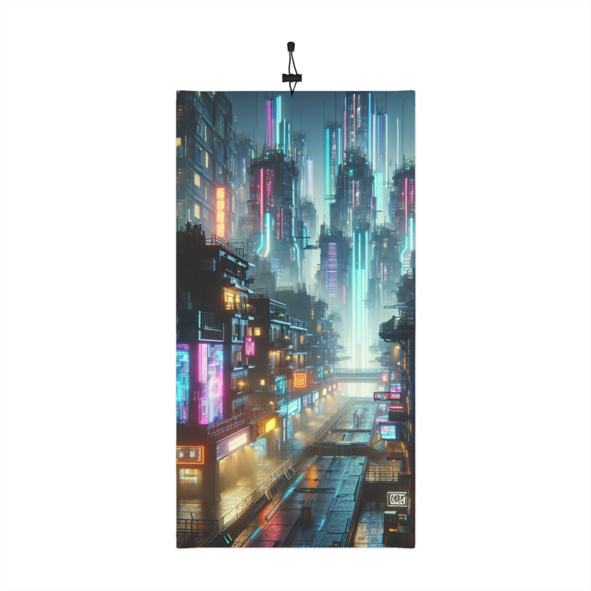 Cyberpunk Cityscape Winter Neck Gaiter — Neon Rain Face Mask with Drawstring - 17.5" × 9.5"